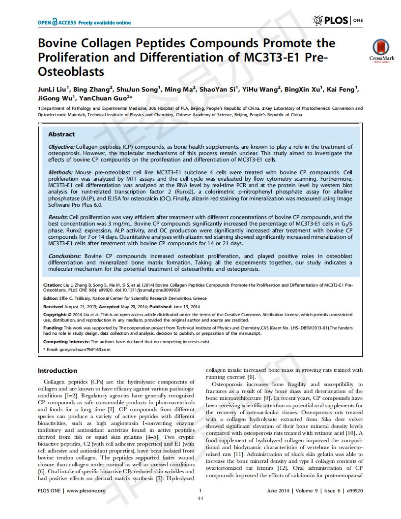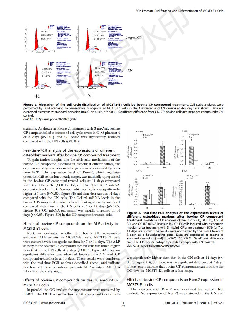 Bovine collagen peptide promotes the proliferation and differentiation of MC3T3-E1 osteoblasts