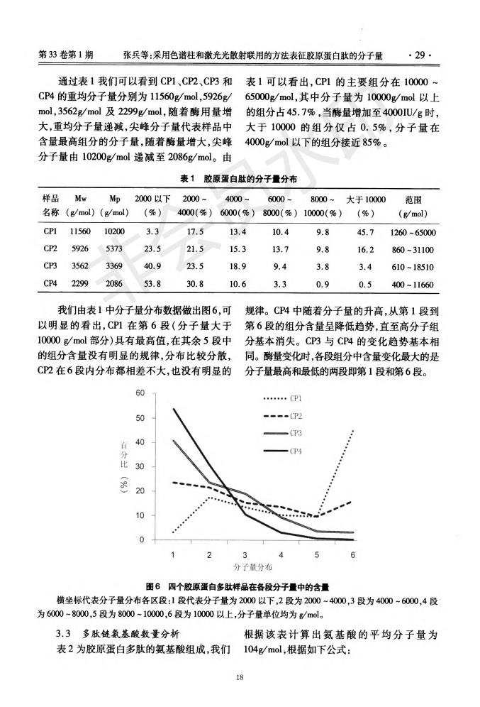 采用色譜柱和激光光散射聯(lián)用的方法表征膠原蛋白肽的分子量
