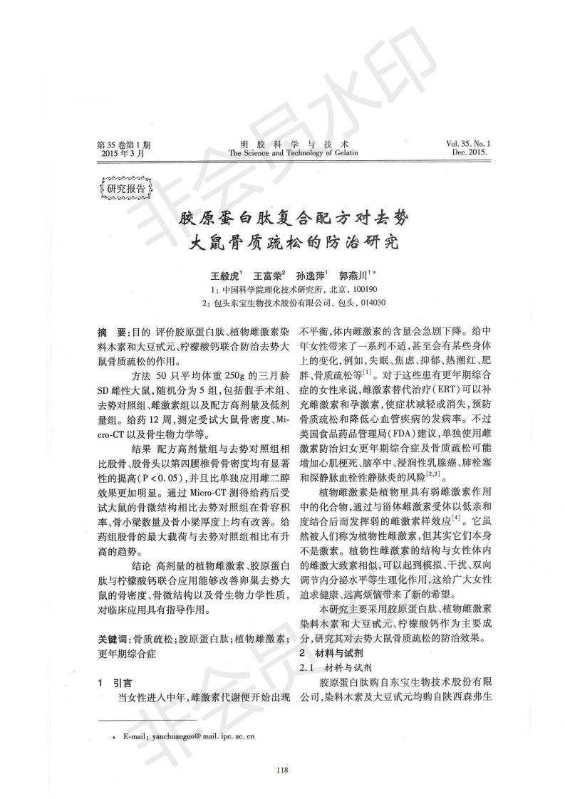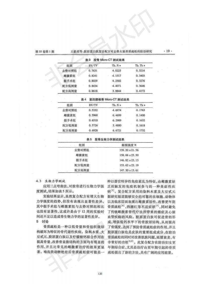膠原蛋白肽復(fù)合配方對去勢大鼠骨質(zhì)疏松的防治研究